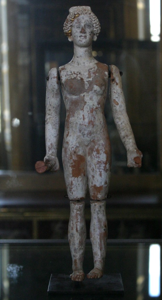 Σβούρα. Αφιέρωμα από το Ιερό των Καβίρων στη Θήβα.Αρχαία κούκλα ( πλαγγών).Doll, 450-350 BC Brussels, Royal Museums of Art and HistoryAncient doll (plangon), hellenistic period, IV-III BC, Brussels, Royal Museums of Art and HistoryHorse on wheels, IV-VI CE, from Thessaloniki, Brussels, Royal Museums of Art and Historyζωόμορφη κουδουνίστρα. 600-480 π.Χ.Είχε στην κοιλιά του χάντρες για να χρησιμοποιείται και σαν κουδουνίστρα. Educational purposes only.
