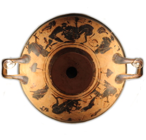 Ο Ηρακλής και το λιοντάρι της Νεμέας. Μελανόμορφη Κύλικα. 5ος αι. π.Χ.