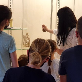 Ακόμα, η «ξεναγός» μας ήταν πολύ ευγενική και φάνηκε πως ξέρει πάρα πολλά πράγματα για την Αρχαία Ελλάδα. Μας έμαθε και τρεις καινούριες λέξεις κατά τη διάρκεια της επίσκεψής μας. Αυτές ήταν οι πλαγγόνες, οι οποίες είναι κούκλες (που ήταν νευρόσπαστες), αθύρματα που ήταν τα παιχνίδια, και τέλος χους που σημαίνει χώμα.