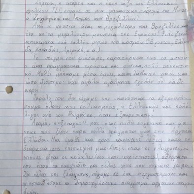 Εμένα μου άρεσαν όλα τα πράγματα που είδαμε, αλλά το αγαπημένο μου ήταν όταν φτιάχναμε από πηλό αλογάκια και κούκλες. Ήταν πολύ διασκεδαστικό όταν τα φτιάχναμε. Το δεύτερο αγαπημένο μου πράγμα ήταν η Ρώμη σε πολύ μικρά κομμάτια, και ήταν τεράστιο. Είχε πάρα πολλές λεπτομέρειες και ήταν όμορφα. Ένα από τα πράγματα που μου άρεσαν ήταν οι κούκλες επειδή μπορούσαν να κουνήσουν τα χέρια και τα πόδια τους και επειδή έπαιζαν κουκλοθέατρα με αυτές.