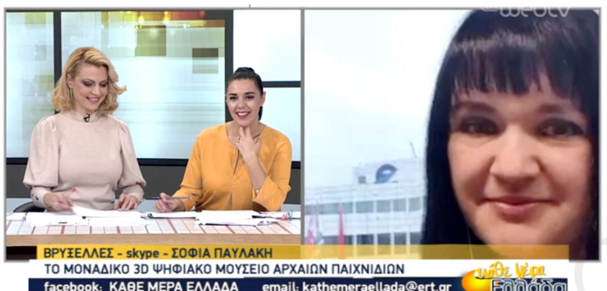 Δείτε τη Σοφία Παυλάκη στην εκπομπή “Κάθε μέρα Ελλάδα” στην ΕΡΤ 3 να μιλάει για το καινούριο ψηφιακό μουσείο παιχνιδιών, το ρόλο που είχαν τα παιχνίδια στην αρχαία Ελλάδα και τί μπορούμε να μάθουμε από αυτά. Επίσης, δείτε το χριστουγεννιάτικο επεισόδιο της σειράς animation Greektoys. Η συνέντευξη πραγματοποιήθηκε […]